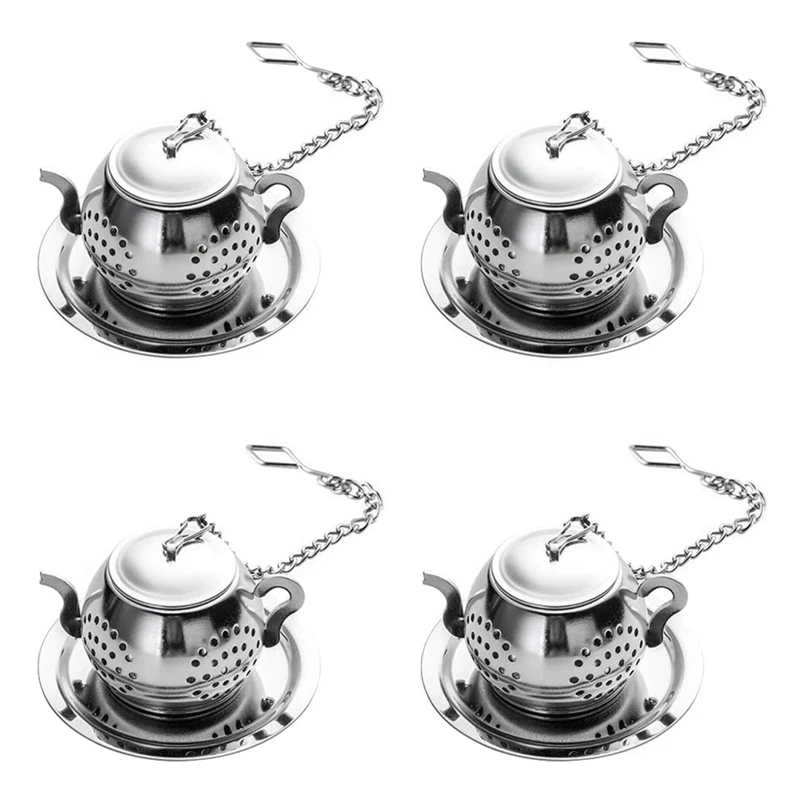 Шарик для заварки листового чая, набор из 4 чайных ситечков из нержавеющей стали с цепочкой и капельным подносом, Чайный фильтр для кружки, ч...