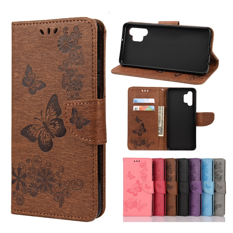 For Samsung Galaxy A32 4G Butterflies Embossing Horizontal Flip Leather Case with Holder & Card Slots & Wallet(Brown)