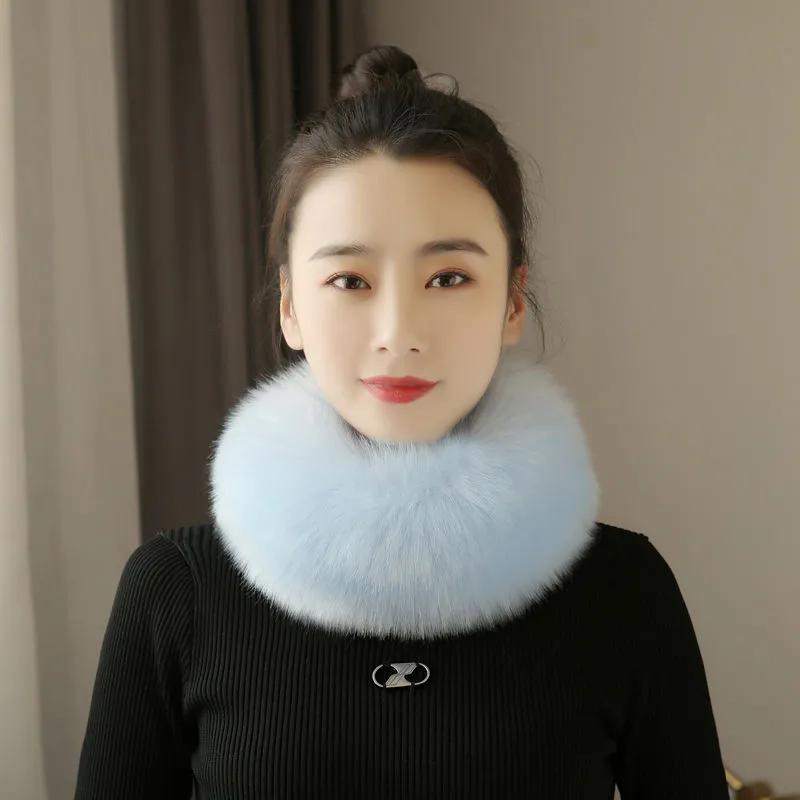 Шарф женский защита шеи лисьего меха плюшевый шарф теплая и удобная шея зимой светло-синий