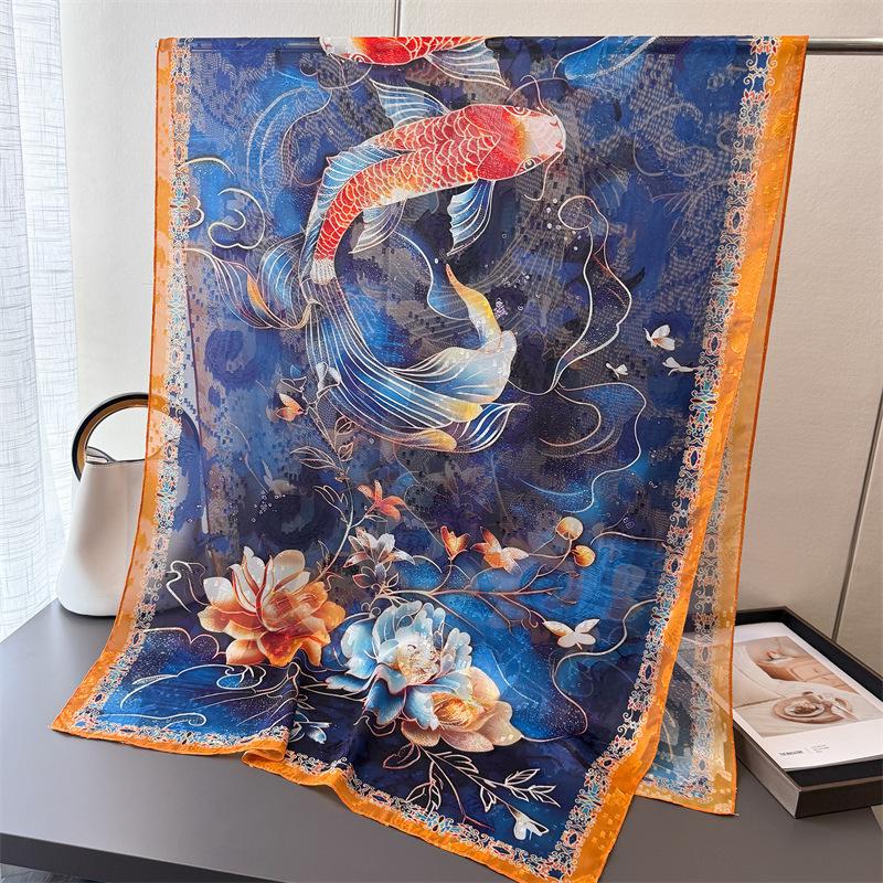 Шарф из шелка с принтом «Верблюжий колокольчик, сон», с вырезанными цветами, весна-лето, большой длинный шарф, высококачественная дорожная шаль, защита от солнца, женский шарф, головной платок 180*70cm