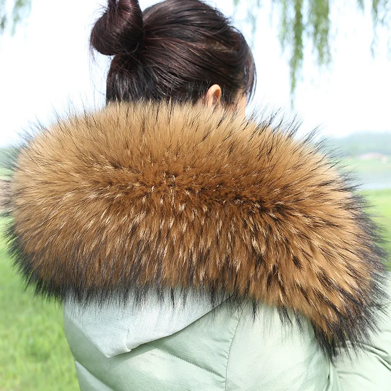 Шарф из 100% натурального натурального меха енота, женский теплый прямой воротник, зимнее роскошное пальто с отделкой капюшоном, шарфы из енота, натуральная длинная шаль
