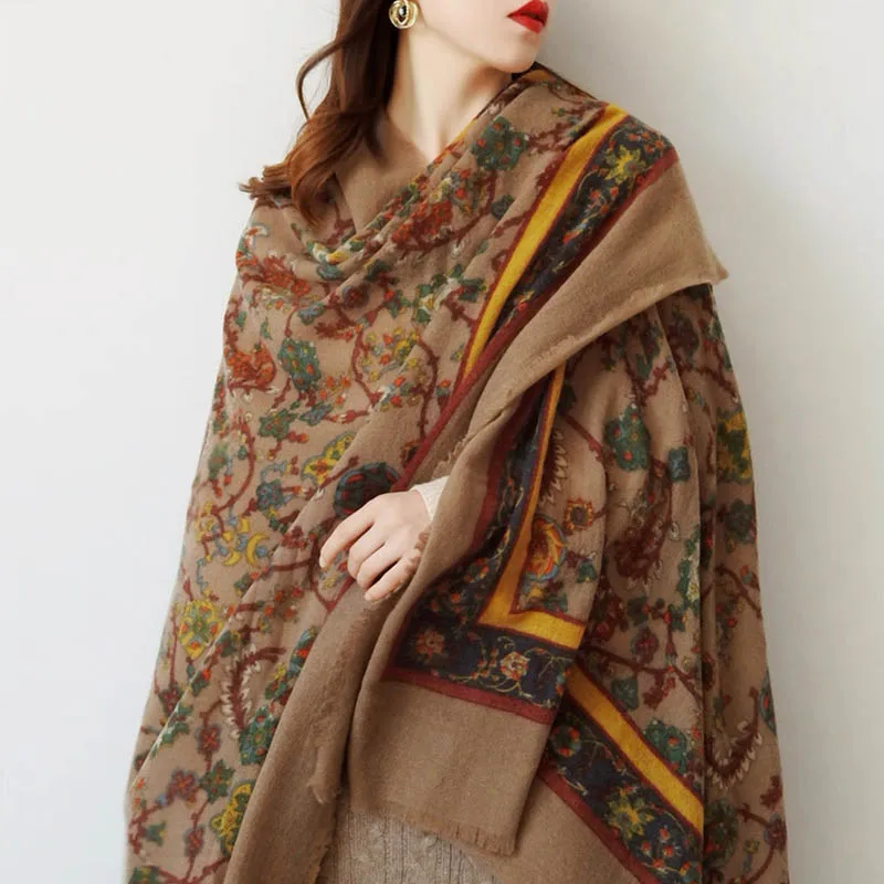 Шарф из 100% шерсти - элегантный и изысканный женский стиль, большая шаль, платок в этническом стиле, толстое и теплое одеяло.