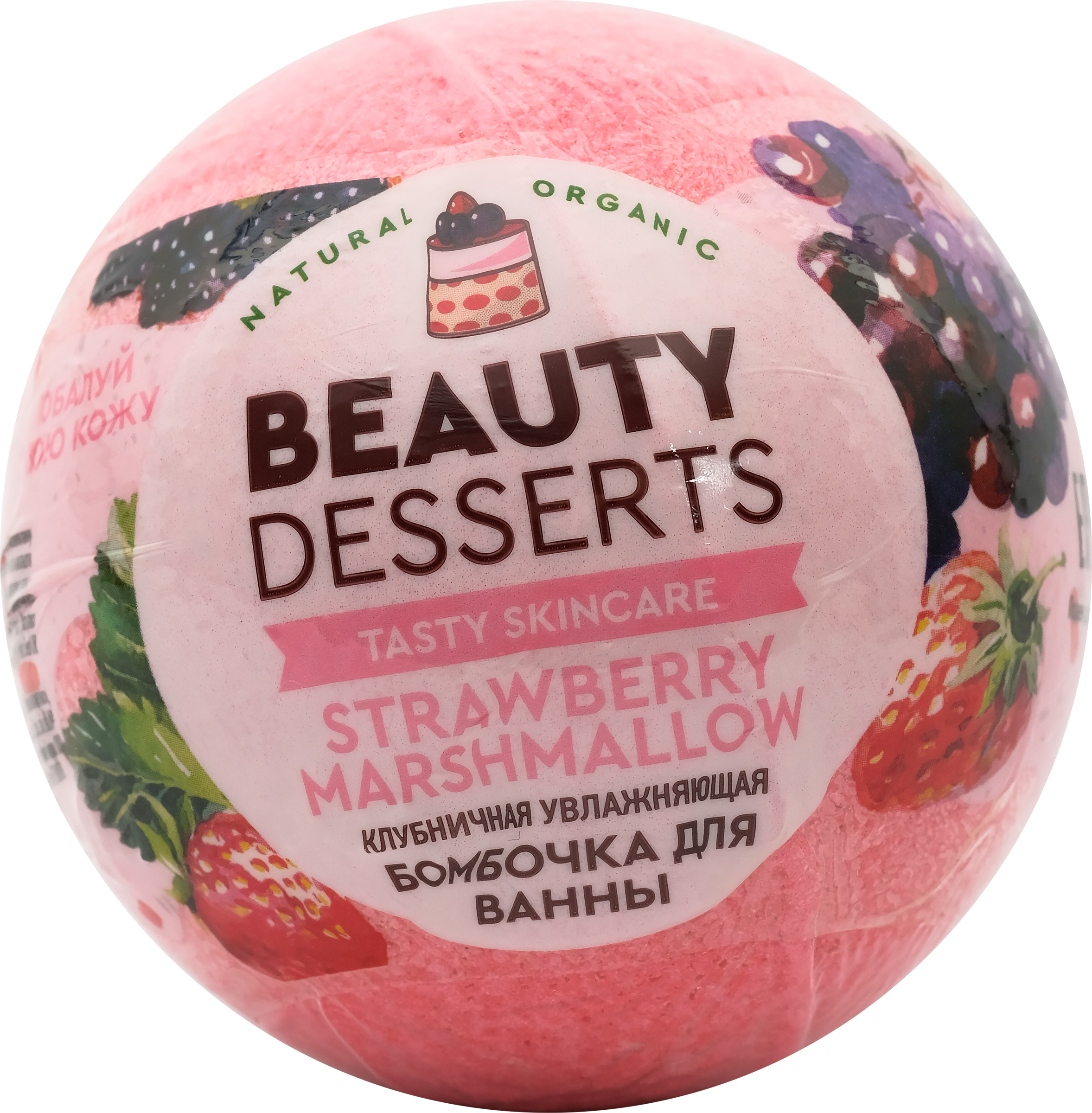 Шар для ванны BEAUTY DESSERTS Шипучая бомбочка увлажняющая клубничная, 110г