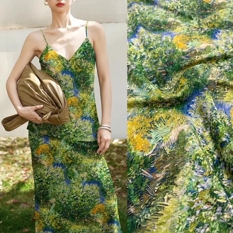 Шелковая крепдешинская ткань шириной 140 см, ширина 18 мм, мягкая великолепная эластичная шелковая ткань из спандекса зеленого леса для шитья платья, пижамы R2565
