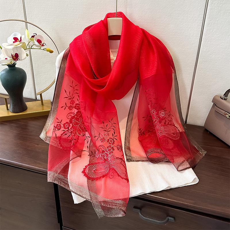 Шелковая шерсть Вышитый шелковый шарф Женская мода Зарубежный стиль Зимний теплый шарф Холодная шаль Тонкий стиль 180*70