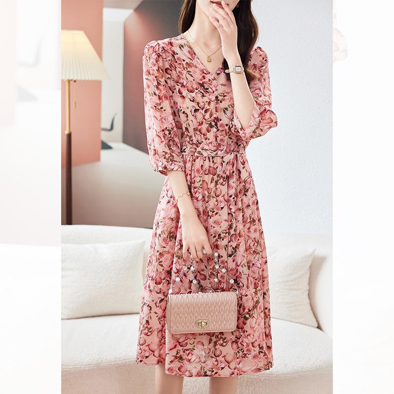 Шелковое платье женское с принтом V-образный вырез на шнуровке легкая роскошь тутовый шелк А-силуэт XXXL