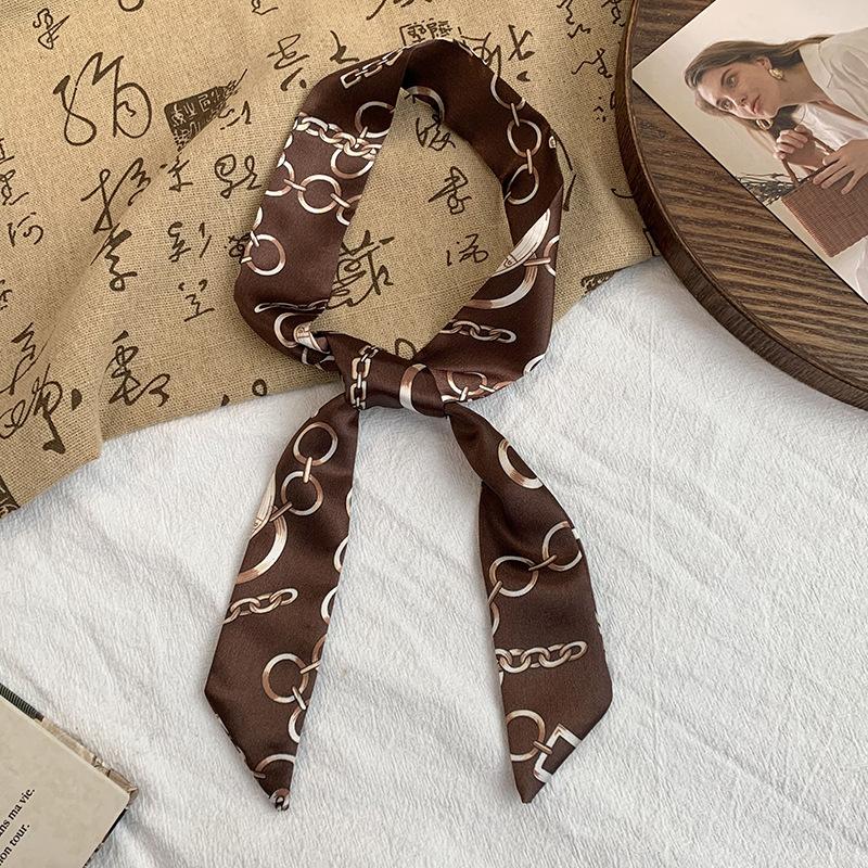 Шелковый шарф, длинная полоса, высококачественный, новый шарф из искусственного шелка твилового переплетения с принтом, косынка, повязка на голову, резинка для волос, сумка, лента, пояс. тёмно-рыжий