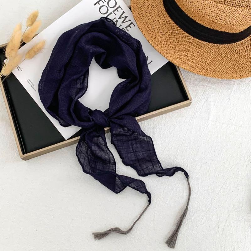 Шелковый шарф новый литературный и модный шарф ретро хлопково-льняной шарф шаль высокая атмосфера треугольный шарф талия тёмно-синий