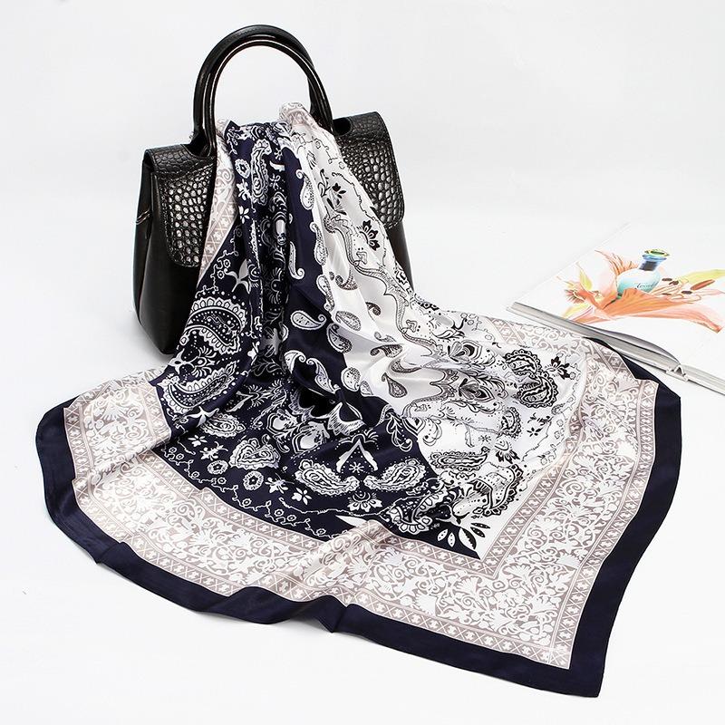 Шелковый шарф, платок на голову, женский искусственный шелковый шарф, атласная шаль с цветочным принтом, подарок на День Богини 90*90cm