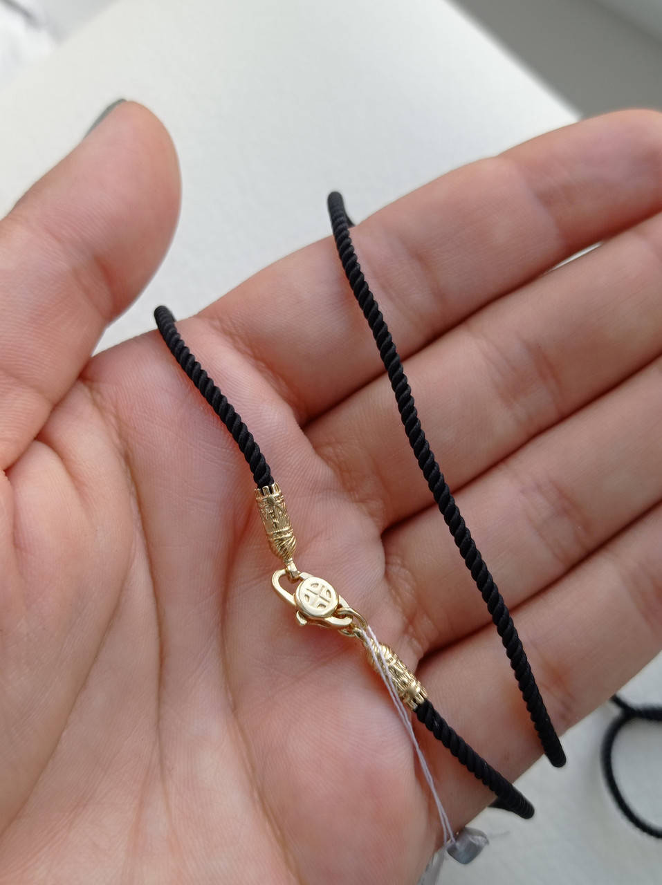 Шелковый шнурок с серебряным позолоченным замком отлично сочетается как с серебряными, так и золотыми кулонами. Очень красиво смотрится с крестами и иконами.
