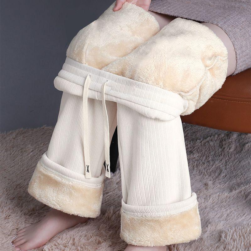 Шенилл брюки палаццо женские осенне-зимние новые плюс бархатные брюки женские прямые повседневные теплые брюки из овчины XXL белый
