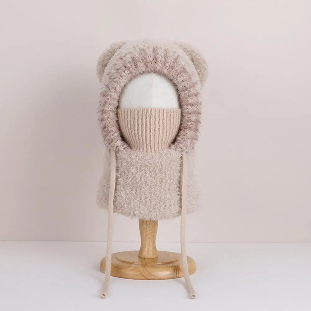 Шерстяная вязаная шапка Уютная плюшевая зимняя шапка с медвежьими ушками и защитой лица Утеплитель для шеи для детей Ветрозащитный теплый вертикальный головной убор для погоды
