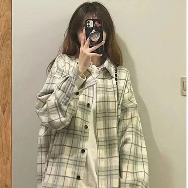 Шерстяная клетчатая рубашка в стиле ретро, женская большая рубашка с длинными рукавами