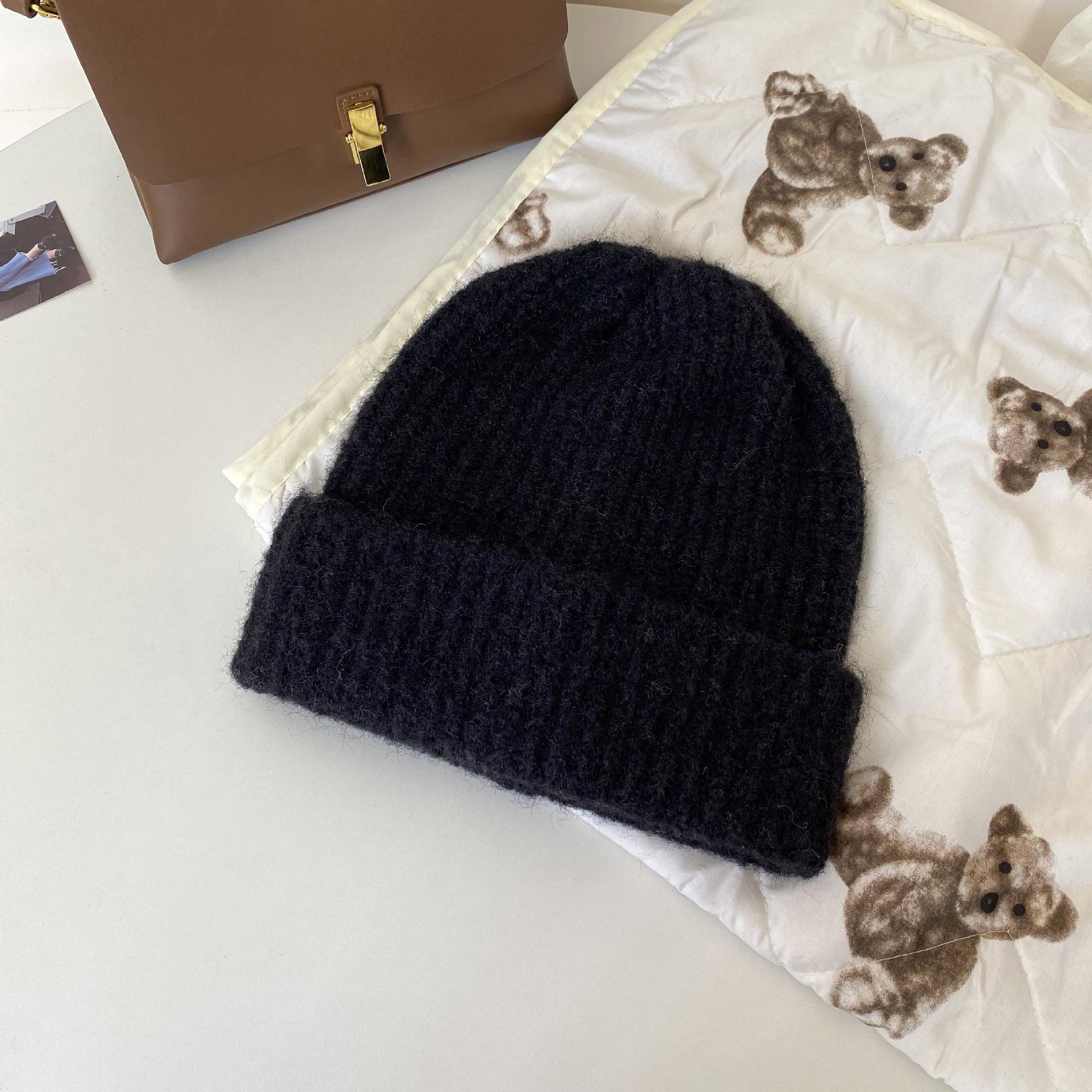 Шерстяная однотонная вязаная шапка для женщин на осень и зиму, универсальная шапка-бини для большого обхвата головы, теплая шапка для защиты лица от холода, маленькая шерстяная шапка для мужчин M(56-58cm)