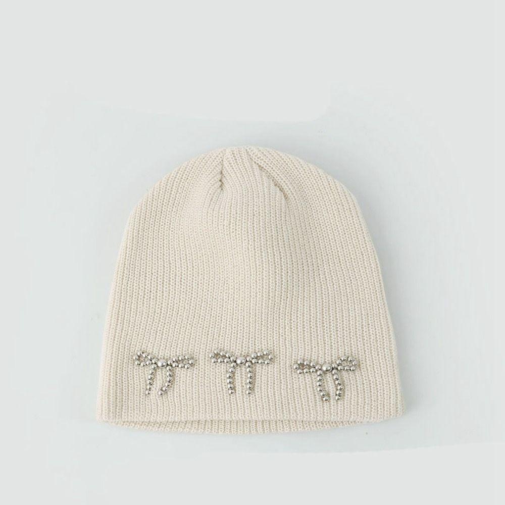 Шерстяная шапка Жемчужный бант Шапки Бант Вязаная шапка Милая вязаная шапка Для улицы бежевый