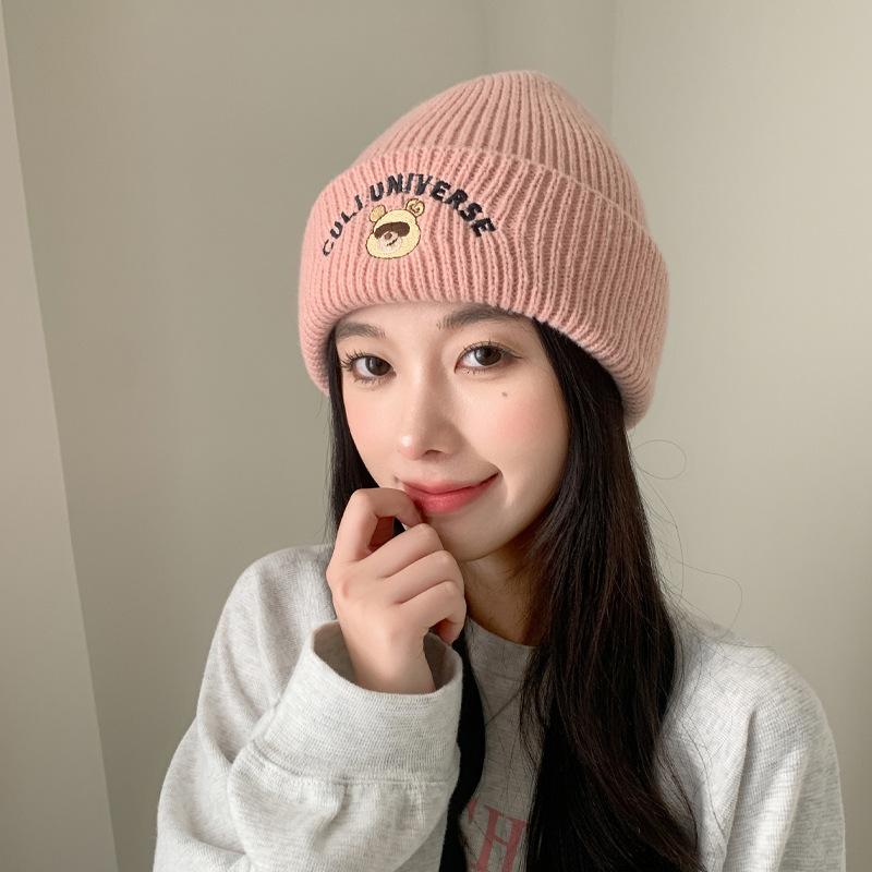 Шерстяная шапка женская зимняя теплая вязаная шапка милая медведь надпись осень и зима студенческая пуловер тренд One Size