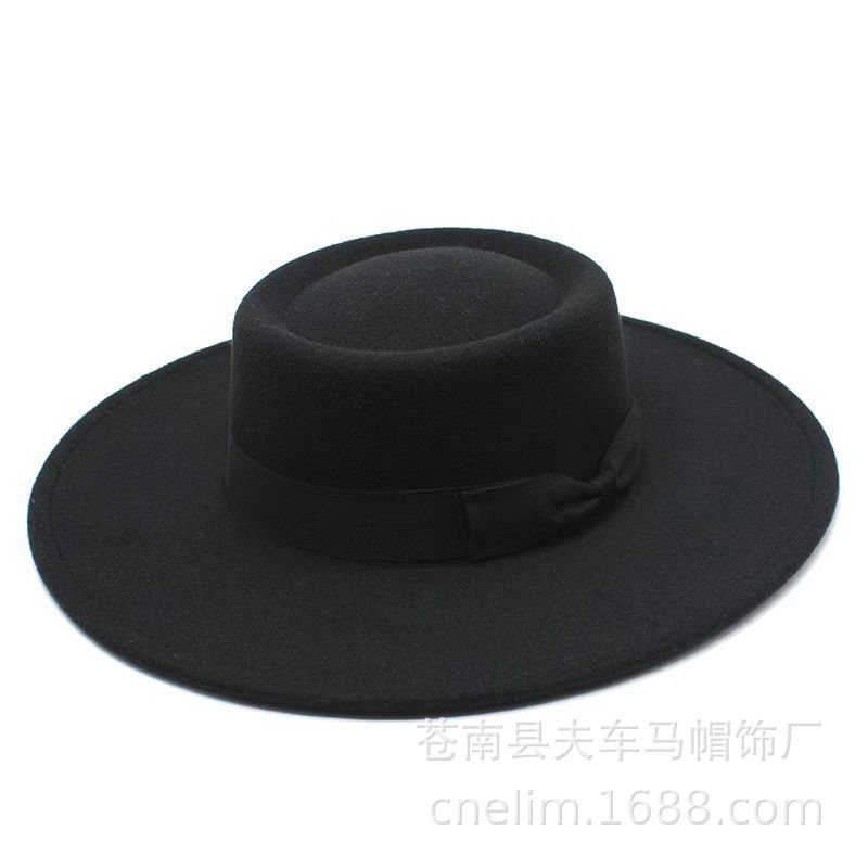 Шерстяная шляпа Ковбойская шляпа Старая Ретро Джазовая Цилиндр Осень и Зима Фетровая шляпа L(58-60cm) чёрный
