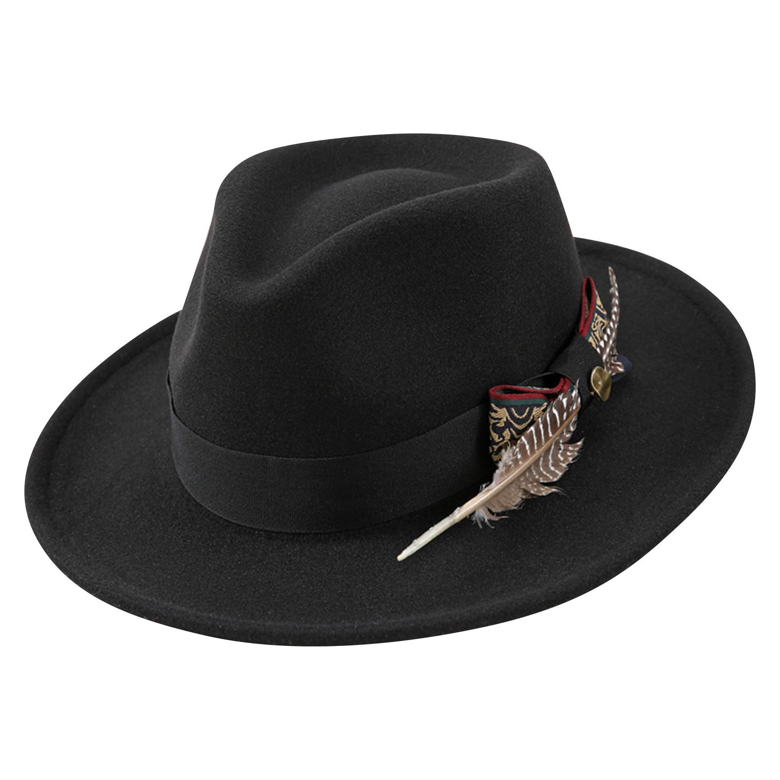 Шерстяная шляпа для мужчин, модная и высококачественная, церемониальная шляпа с перьями и сердцем для женщин, высококачественная рыцарская шляпа One Size чёрный