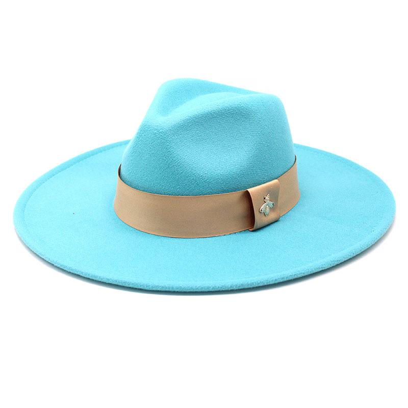 Шерстяная шляпа с большими полями, мужская и женская джазовая шляпа, британская простая фетровая шляпа в форме сердца персикового цвета с вогнутым и выпуклым верхом M(56-58cm) озеро синий