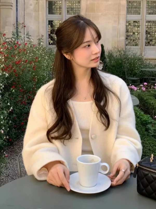 Шерстяное меховое пальто в стиле ретро с v-образным вырезом на одной пуговице, женская осенне-зимняя теплая пушистая верхняя одежда, мягкое пальто китайского бренда