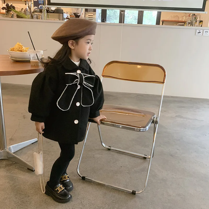 Шерстяное пальто для девочек, новинка 2022, детская осенне-зимняя одежда в корейском и западном стиле, плотная шерстяная куртка, верхняя одежд...