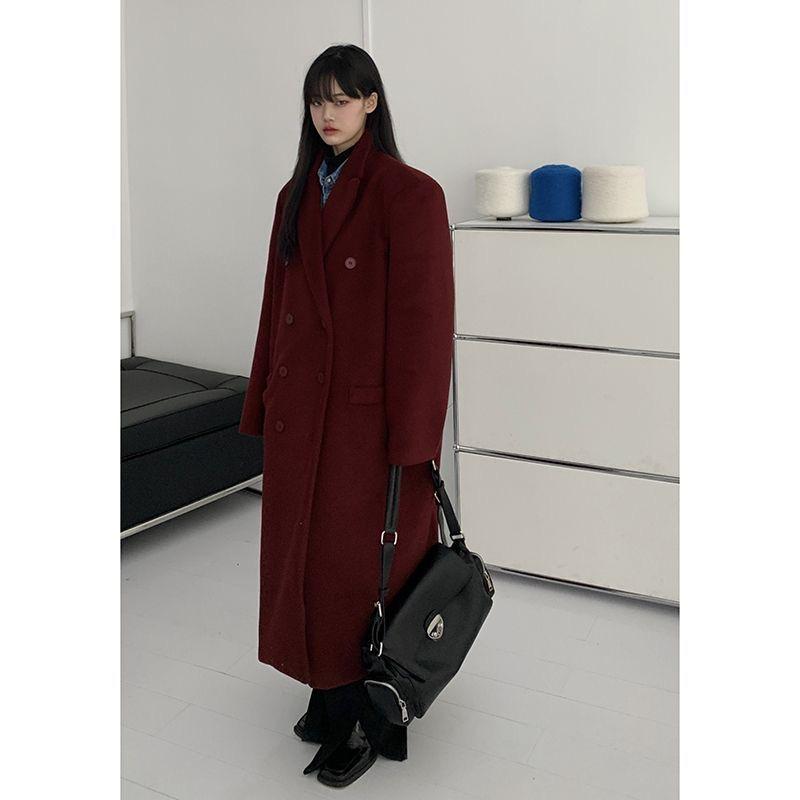 Шерстяное пальто с красным воротником в стиле ретро в стиле ретро