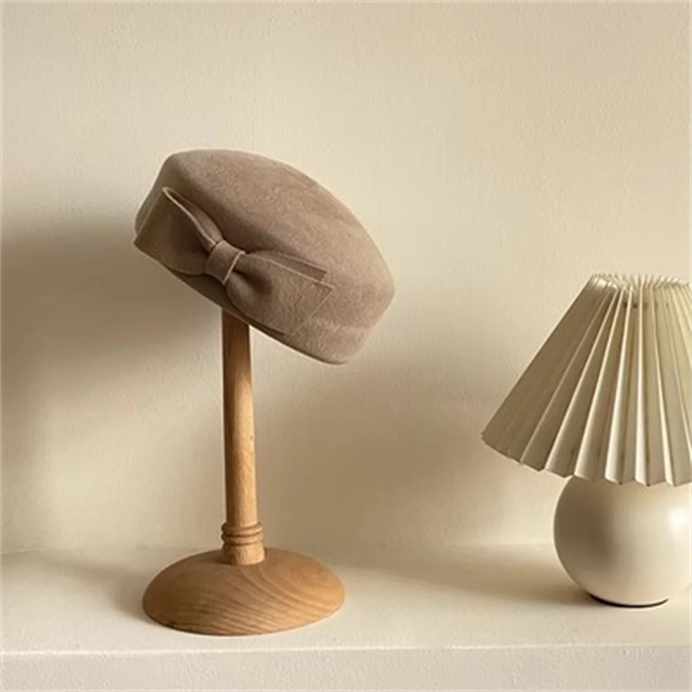 Шерстяной берет с бантом для женщин осень-зима милая и женская элегантная Ретро Милая фетровая шляпа с плоскими полями большого размера