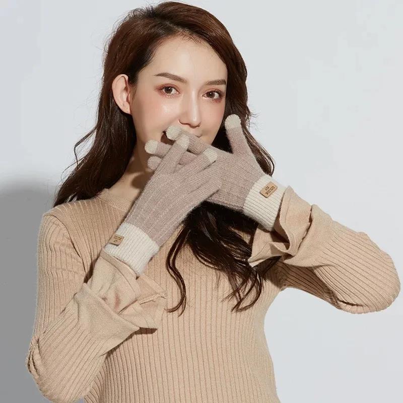 Шерстяные вязаные перчатки для сенсорного экрана, женские осенне-зимние теплые уличные антифризы плюс утолщенные флисовые перчатки хаки