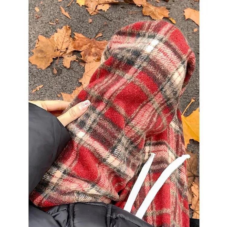 Шерстяные повседневные брюки в клетку красного цвета в стиле ретро для женщин на осень и зиму, новые прямые брюки в пол с высокой талией и драпировкой XXL