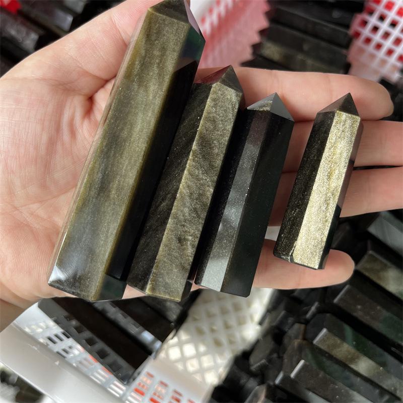 Шестигранная кристальная точка из золотого обсидиана для декора дома или офиса