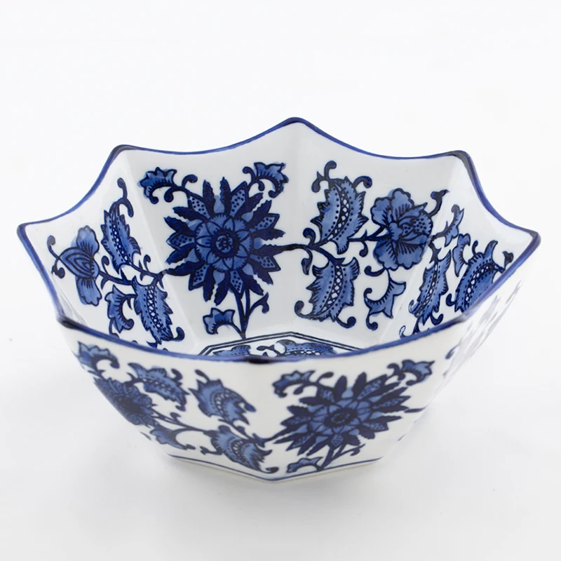 Шестиугольная чаша для закусок, керамическая чаша для фруктов, восьмиугольная ручная роспись, сине-белая фарфоровая винтажная чаша для фруктов