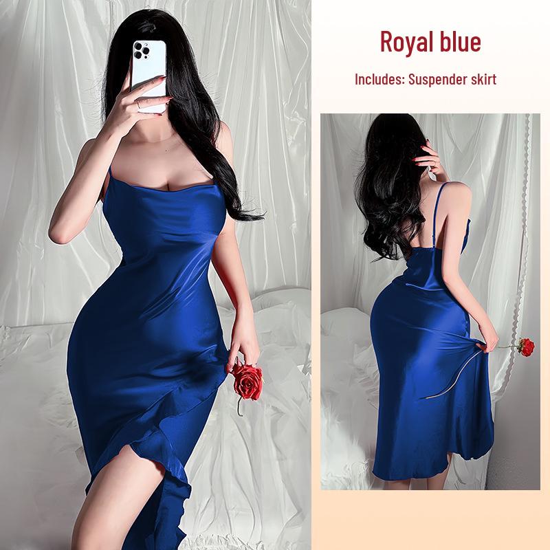 Шикарная ночная сорочка на тонких бретельках с оборкой по подолу и разрезом - Многоцветная одежда для дома L (suggested 60-70 kg)