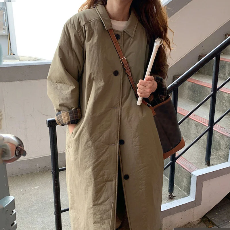 Шикарная осенне-зимняя однобортная Свободная куртка в Корейском стиле с маленькими лацканами для отдыха средняя и длинная Хлопковая женск...