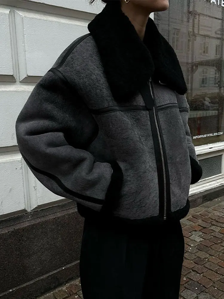 Шикарная плюшевая теплая куртка на молнии с отложным воротником, женская модная однотонная куртка с отложным воротником, зимняя повседневная утепленная верхняя одежда