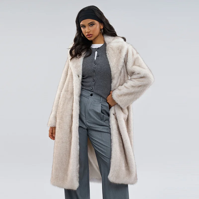 Шикарная роскошная пушистая толстая теплая белая шуба из искусственного меха женская длинная пушистая меховая куртка с лацканами женское зимнее пальто плюшевая верхняя одежда шубы