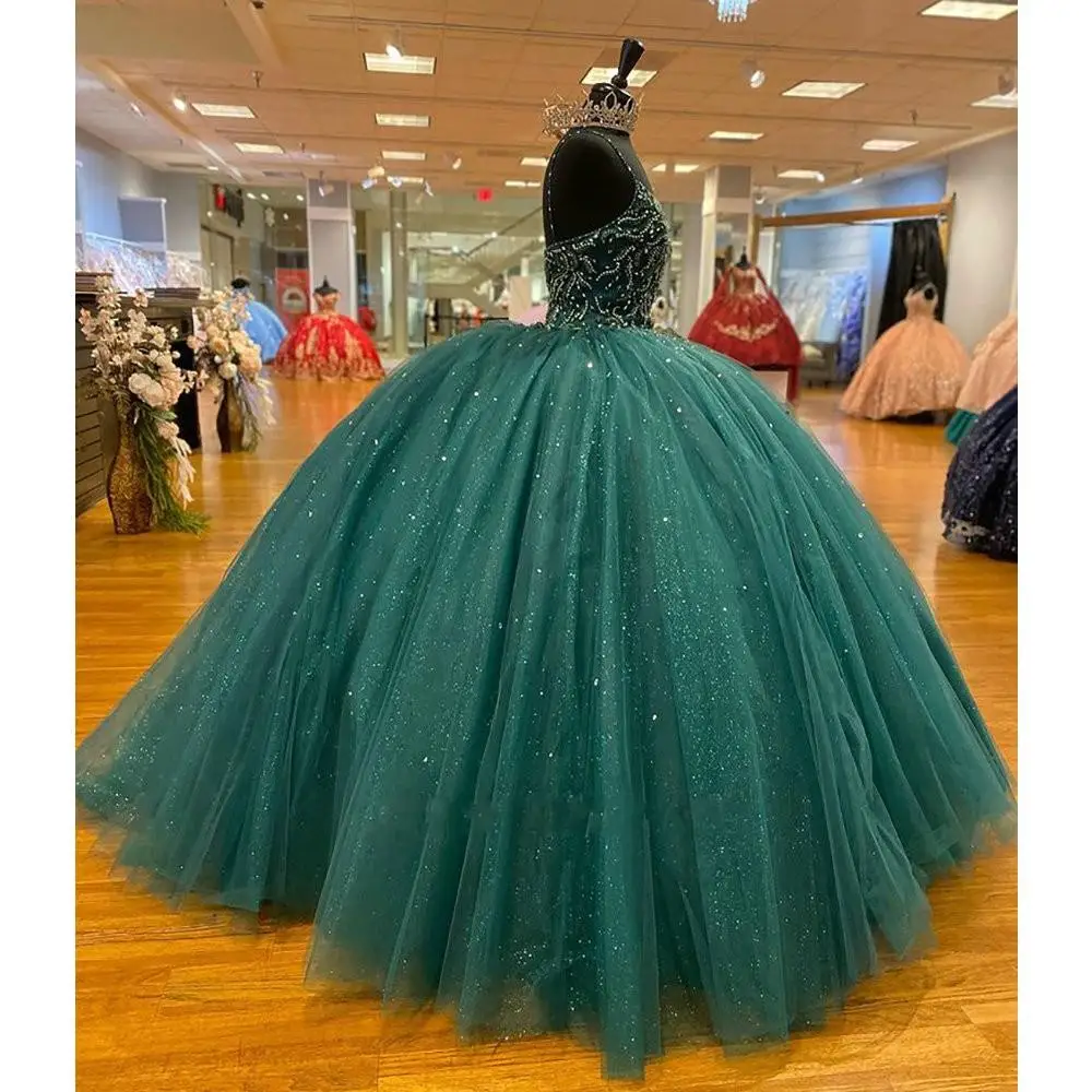 Шикарное зеленое платье для девушек ярко-охотничьи платья на тонких бретельках с бисером и открытой спиной из блестящего тюля милое платье ...