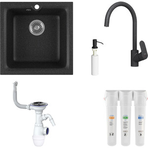 Комплект мойки GreenStone GRS-42-308 Am.Pm Like с фильтром Гейзер Смарт и дозатором, черная, GRS-42-308 Am.Pm Like с фильтром Гейзер Смарт и дозатором, черная