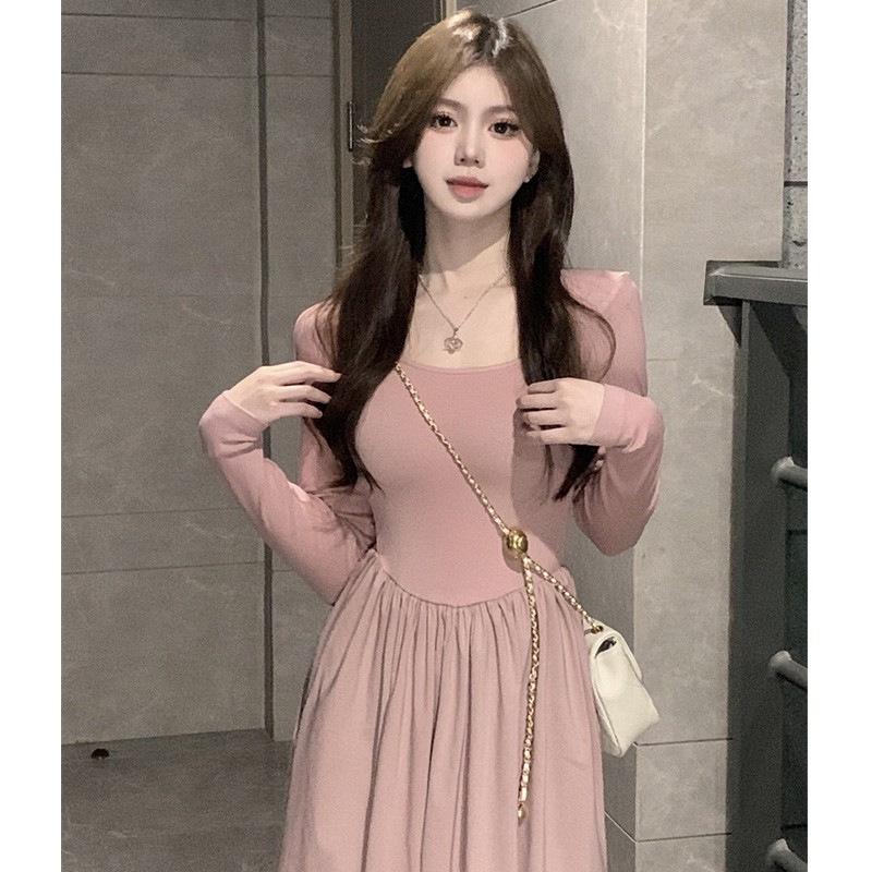 Шикарное платье А-силуэта цвета чайной розы для перерыва на чай - Приталенный крой во французском стиле для весны и осени Medium розовый