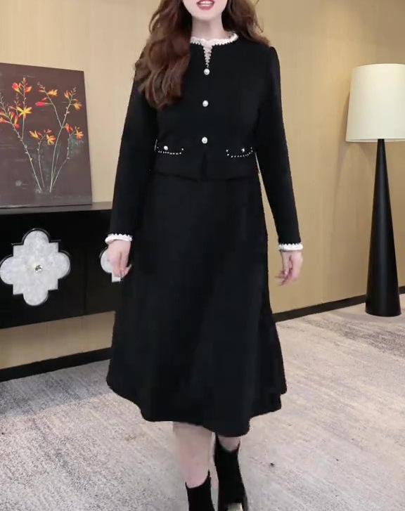 Шикарное платье большого размера на флисовой подкладке для женщин среднего возраста: Коллекция Осень-Зима 3XL (for 160-180 jin)