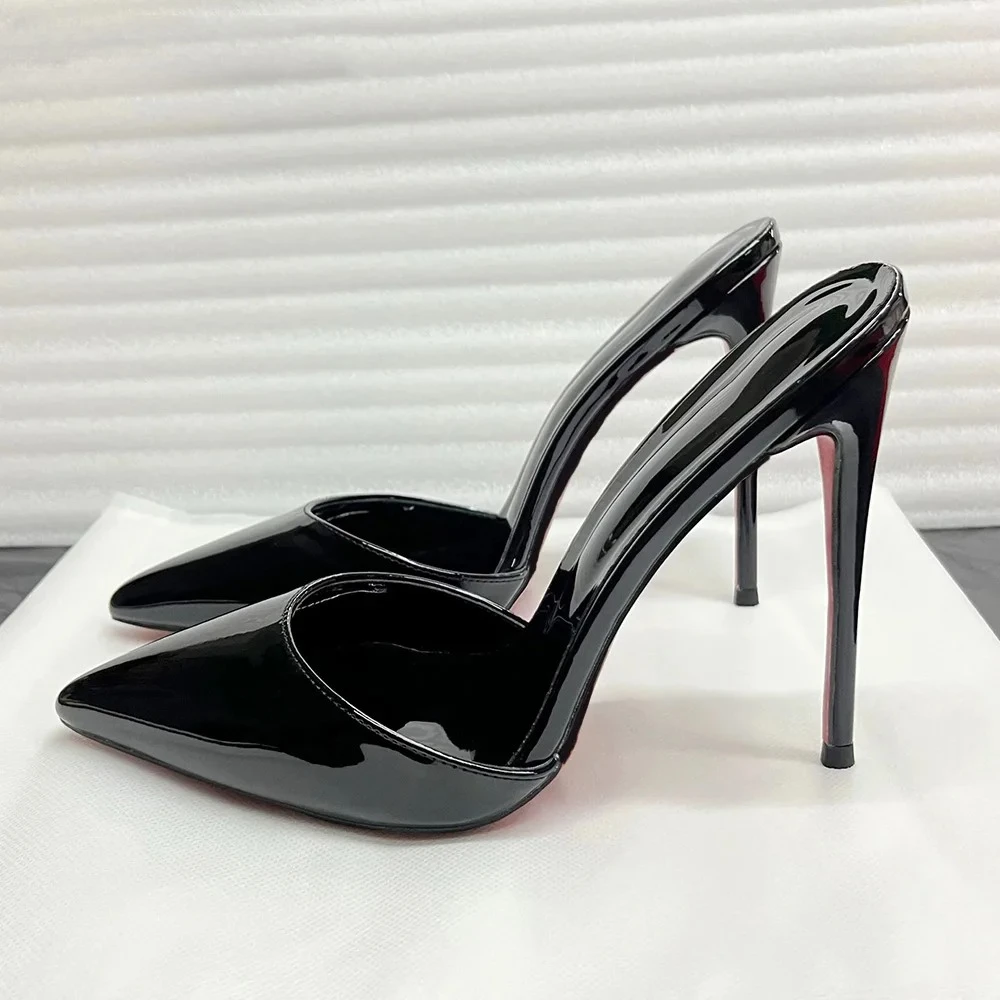 Шикарные женские сандалии, пикантные шлепанцы на высоком каблуке 12 см, летние туфли-лодочки на шпильке с острым носком, женские элегантные вечерние модельные туфли черного цвета