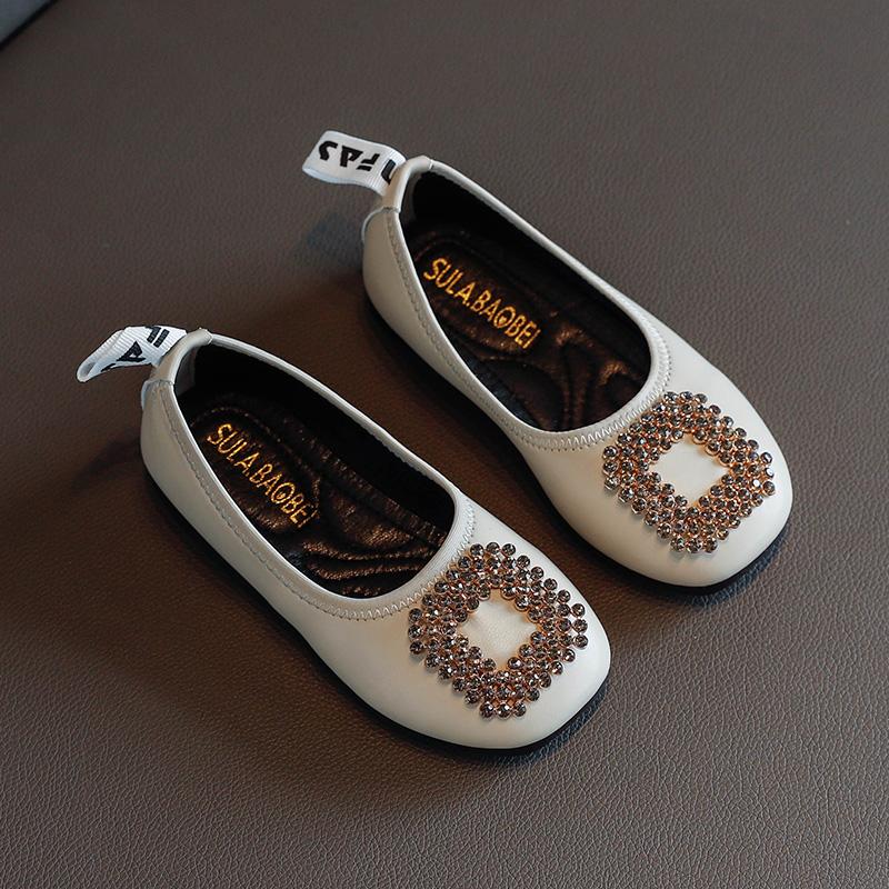 Шикарные туфли из кожи для девочек, для малышей, для маленьких детей, для больших детей, туфли-лодочки, туфли на плоской подошве с квадратными стразами, танцевальные туфли принцессы 21 бежевый