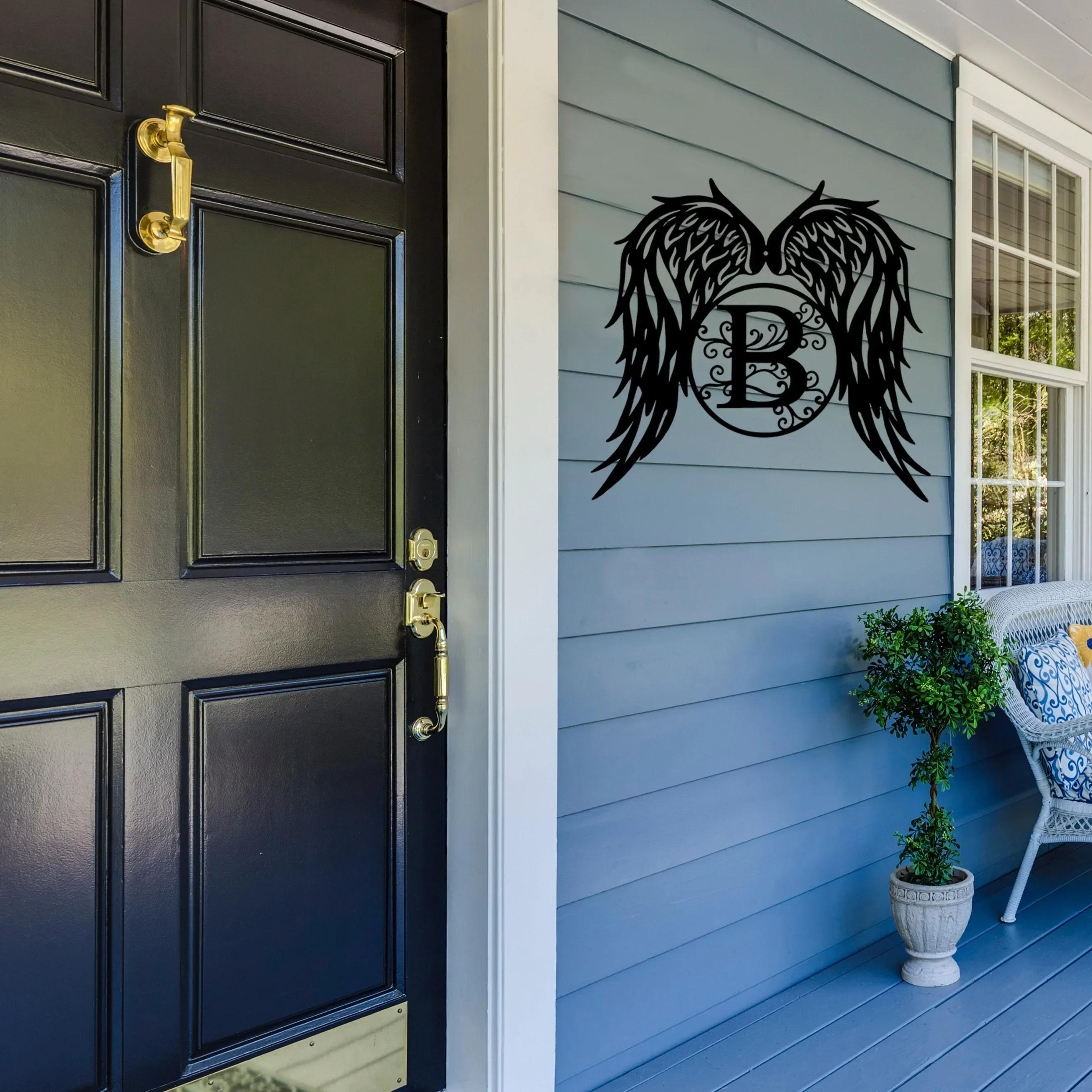 Шикарный цельный персонализированный перо крылья металлический знак новоселье свадебный подарок элегантная дверь подвесное настенное искусство чёрный