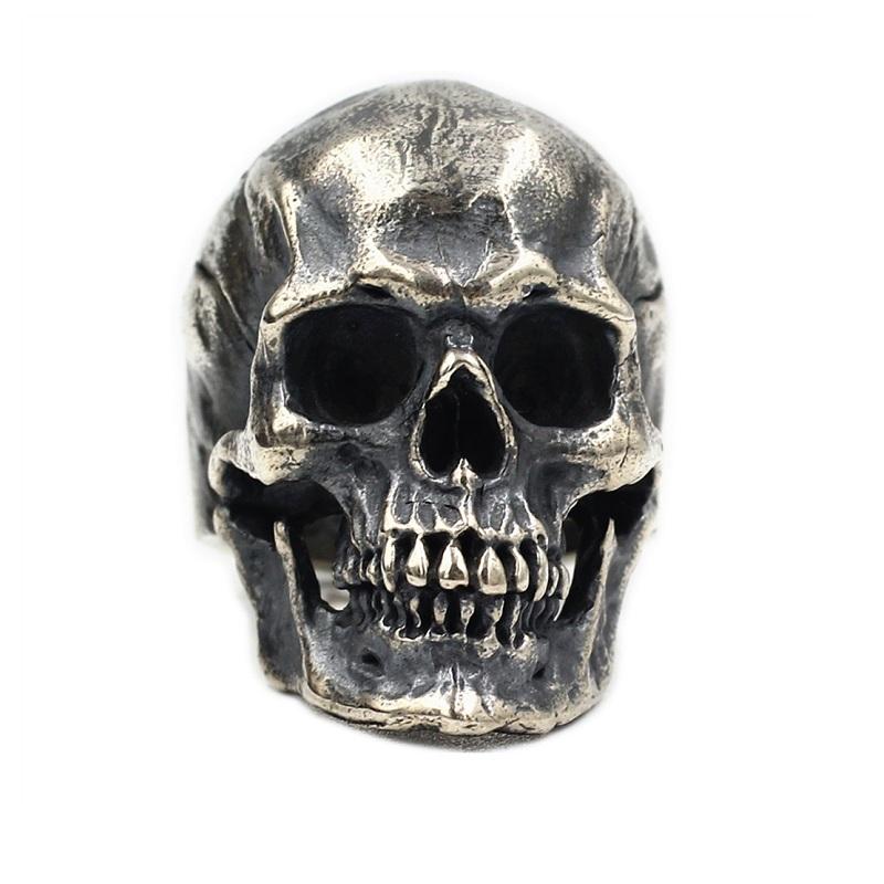 Ширина 34 мм Настоящее серебро Большое Ретро Кольцо Черепа Мужчина Женщина S925 Стерлинговое серебро Ручная работа Череп Голова Закрытые Кольца Мужские Ювелирные Изделия