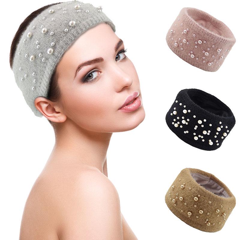 Широкая повязка на голову с жемчугом, зимние уши, теплый тюрбан, вязаные повязки для волос, мягкая вязаная повязка для волос, однотонные тюрбаны, аксессуары для волос