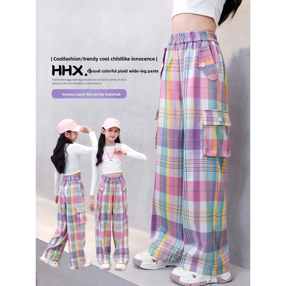 Широкие брюки в клетку для девочек, летняя одежда с защитой от комаров, детская рабочая одежда, брюки, длинные брюки в клетку для девочек, средние и большие...