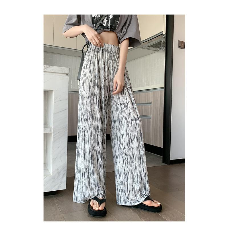 Широкие брюки из ледяного шелка для женщин, летние, тонкие, с высокой талией, облегающие, черные, повседневные, свободные, прямые, с узором тай-дай XXL