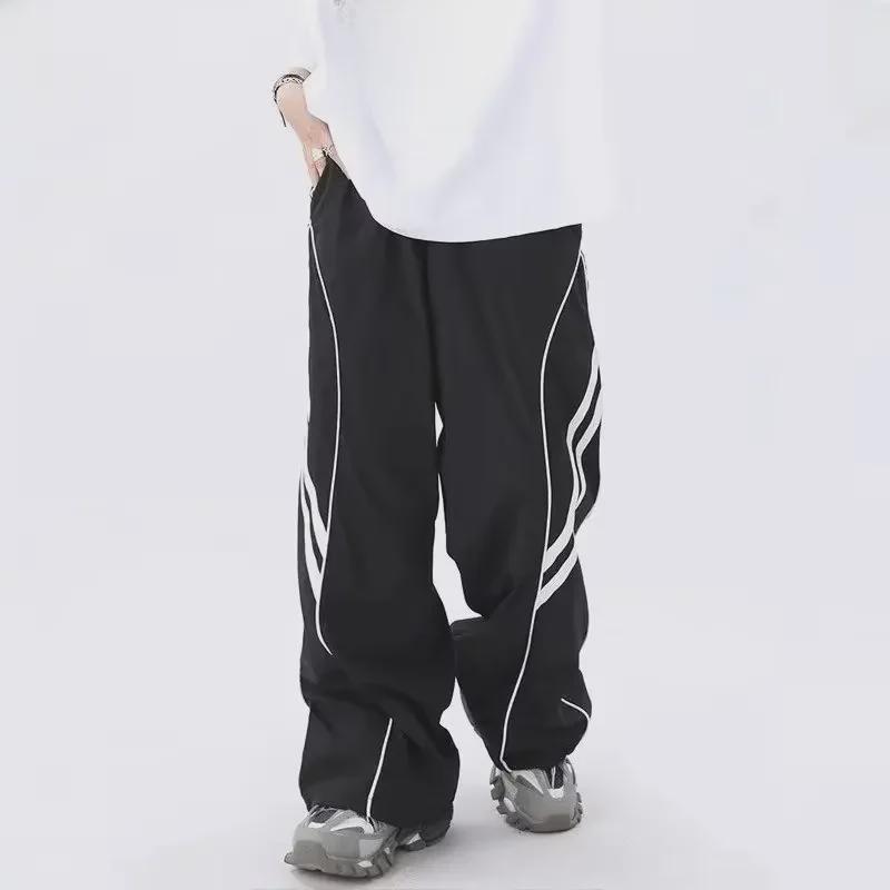 Широкие брюки-унисекс в стиле ретро на завязках для лета и осени – свободная, универсальная, повседневная одежда прямого кроя 3XL чёрный