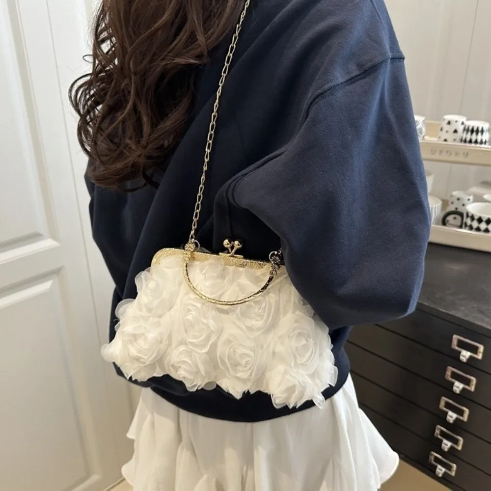 Шифоновая вечерняя банкетная сумка в стиле ретро с цепочкой и цветочным замком, сумка через плечо большой емкости, ручная сумка через плечо для ужина
