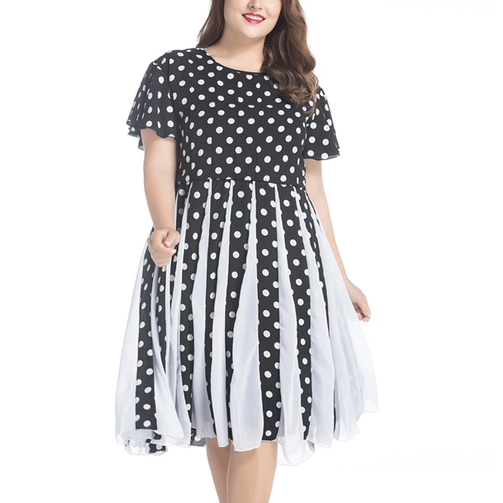 Шифоновое платье в стиле ретро с коротким рукавом и лепестками; женская одежда 2018; элегантное платье в горошек; вечернее платье; большие раз...