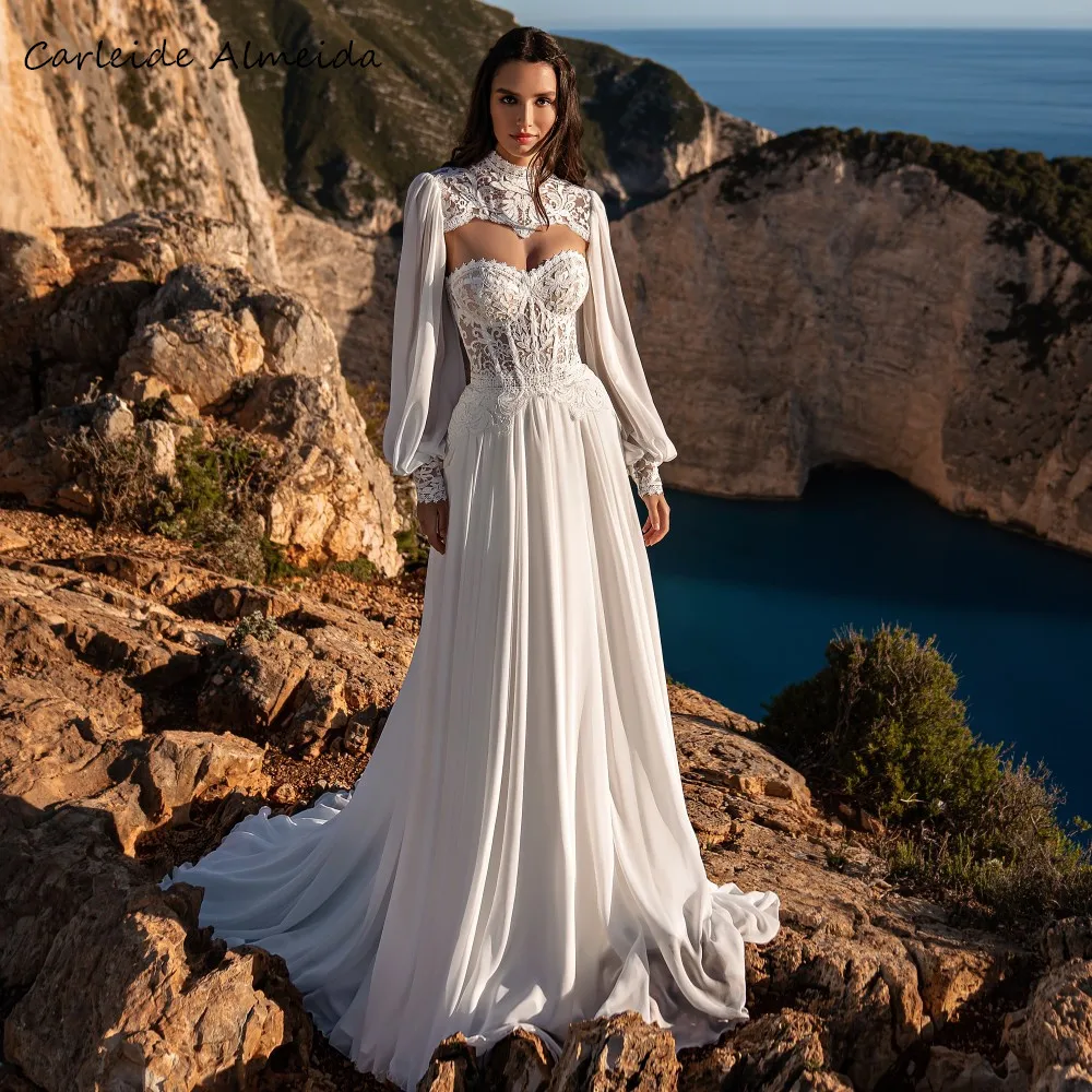 Шифоновое платье-трапеция из тюля и шифона, свадебное платье в богемном стиле, 2022, Съемная куртка с длинным рукавом, простые платья невесты с...